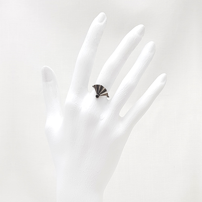 Anillo en plata de ley de 925 con una circonita negra en el centro.